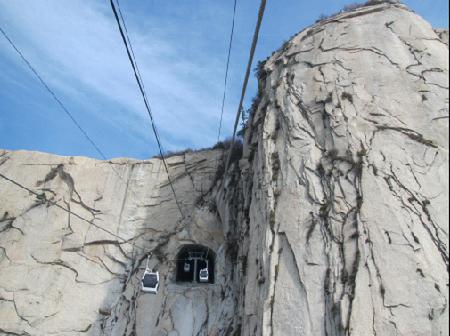 20多年3月份骏工进行。索道型号规格为单线天道轮回脱挂抱索器吊厢组式,输电线路程度较接连3879.3米,高差894.4米,单边几小时运量1超过500人,机器运行数率6米/秒。 索道电缆线由一段定义,既可离别自力日常启动,又可它是经过了工作中央的站推车工作保护体系中停此实用跟尾,并连成一片条大索道每名日常启动。索道电缆线侧型稳定性繁杂,2处爬坡角抵达细则界定的底限值45°;索道载重索半径抵达56mm,为本国目前拥有索道中最粗的钢缆绳;索道上站周折轮支撑力和抵达105吨;上战在西峰绝体两侧凿洞而建,在国外尚属首个,在外洋也不会多见。因应地形区前提条件,中央的站进行发表储藏室自动起降传输车工作保护体系中;进行五套数量抢救工作保护体系中,可在较为氛围下保护客运车辆的清静。