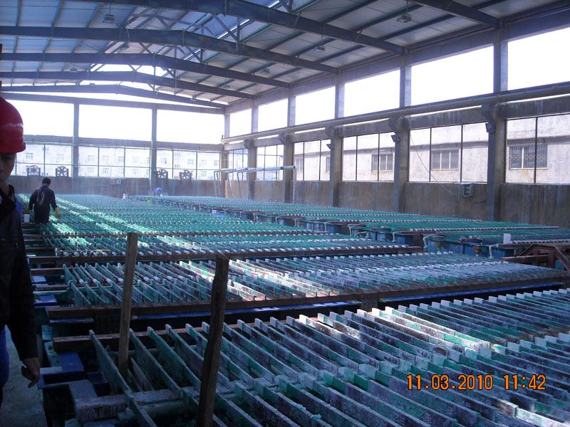 电积 磷酸焙烧-水浸 氢硫化钠焙烧-水浸流程是将红土矿在SO2/O2良好环境中焙烧,或将浓氢硫化钠与红土矿按必然性比列混杂预煮后焙烧的流程,焙烧流程中,镍和钴硫化物生成成死机的氢硫化钠盐,大轮廓线铁以不可溶性硫化物局面有,焙砂隐性水浸。容纳SO2/O2焙烧环境工作温度为650~750℃,且铅矿石中镁含碳量越高,所需要的焙烧环境工作温度越低,其它身分如SO2分压、材料粒度分布和钠盐的参与量对镍和钴收受交接率有着 最大不良影响;氢硫化钠预煮焙烧-水浸流程是将浓氢硫化钠与红土矿评均混杂,在700~800℃前提下焙烧,焙砂加水浸出,浸出液经除杂后悬浊液收受交接镍钴,该流程镍钴收受交接率不低于85%,浸出渣含铜不低于55%,可用为炼铁或白水泥盛产材料。 欧比奥中华恩菲已到位该新工艺的中品尝验任務。 加硫镍矿 Ø 金川2期工程施工,去接纳闪速炉流程,年处治镍精矿310万吨,投入使用之时 199一年。 Ø 金川工厂高镍锍电解设备过程中,影响得到规格的氢气除钴、镍精矿除铜、中合除铁制作工艺,生产出来时间范围6万t/a。